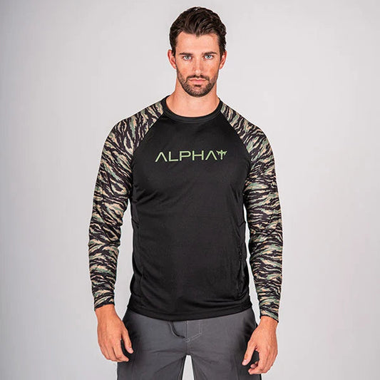 Tactical Long Sleeve Mesh | Black | 2 Sleeve Tiger Camo | Alpha