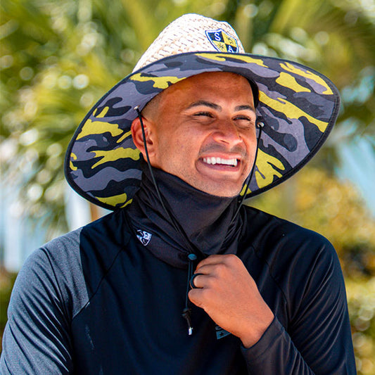 Under Brim Straw Hat | Tidal Waves | SA Blue Shield Patch